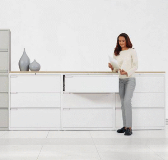 Integrated organizational systems including filing, lockers, cabinets, and shelving.Storage Solutions